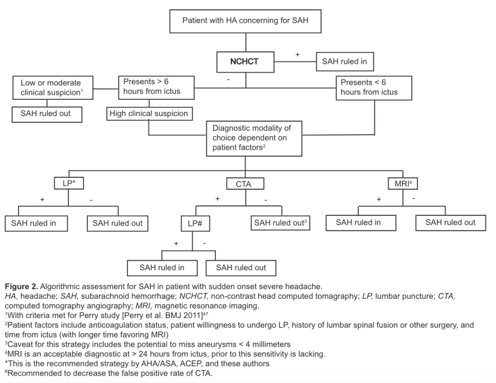 - Read through the Marcolini review of management of SAH which is also the recommended approach from the American College of Emergency Physicians. 2
